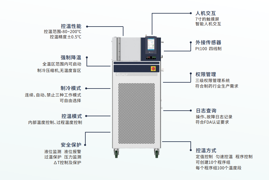 高低溫一體機廣泛應用于各個領域,如實驗室中的樣品處理、物料穩定性測試;化工領域中的反應釜、反應器的加熱和冷卻;電子行業中的元器件測試和老化實驗;生物醫藥設備的溫度控制等,其靈活性和可靠性使其成為許多行業中不可或缺的設備。